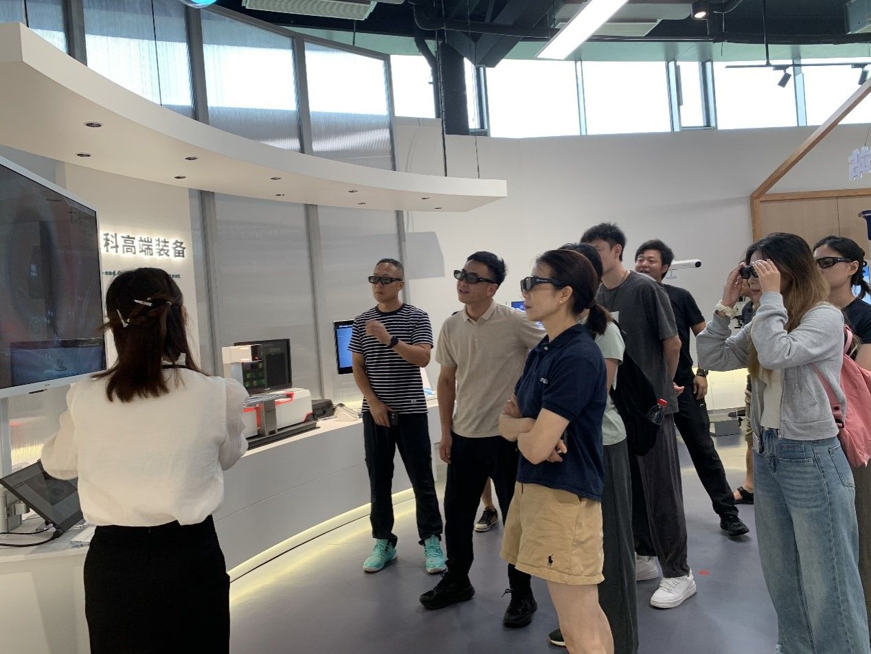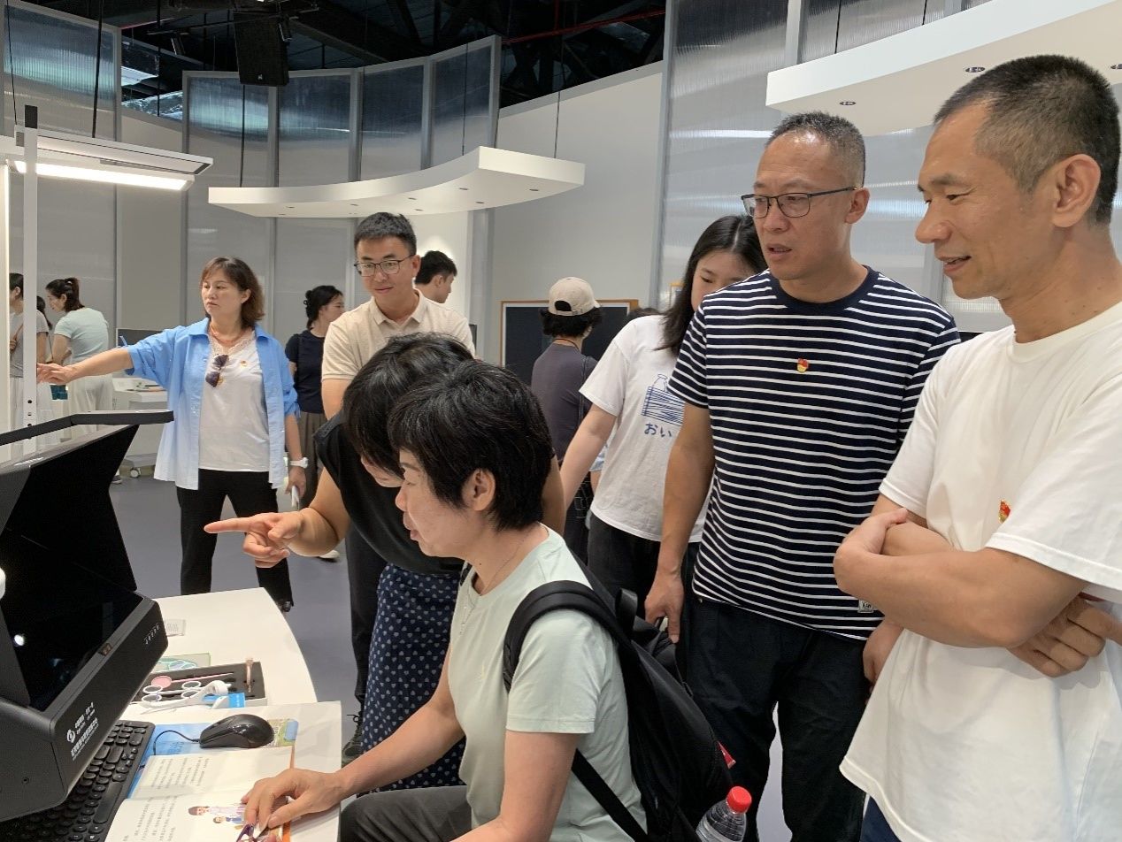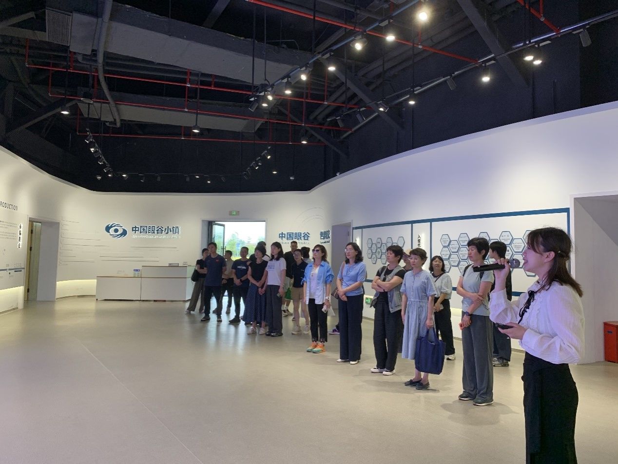 中国眼谷作为龙湾区政府与草莓视频 附属眼视光医院联合共建的眼健康新型研发机构和产业平台,是目前全国唯一的眼视光产业创新综合体,是温州新质生产力的代表。党员教师先后参观了小镇客厅和眼健康产品展示馆。在小镇客厅了解了中国眼谷特色小镇的目标定位:打造成世界眼健康中心,形成科研高地、产业高地、人才高地和诊疗高地。 在眼健康产品展示馆,可以一览入驻企业、人才团队研发的眼健康领域国产化器械、材料、镜片。同时,馆内还展示了温州在近视防控领域的“前卫模式”——阳光教室、未来手术室、未来社区健康站等医疗场景。沉浸式体验孵化产品及智能场景,见证了科技赋能产业、新质生产力的魅力。