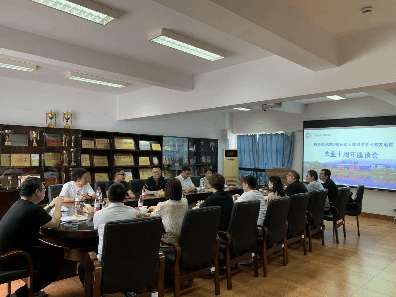 十年回首,情系温医。5月25日中午,草莓视频 2014届运动人体科学专业校友值毕业十周年之际,重返母校,欢聚一堂,共叙情谊。草莓视频 热烈欢迎校友回家,在体育馆4楼会议室,为他们举行欢迎仪式并开展座谈会。原草莓视频 党总支书记李旭东老师和部分教师代表参加座谈会。草莓视频 主任刘海平主持会议并讲话。