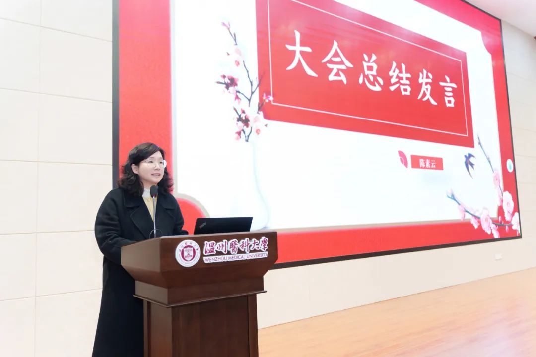 陈素云作大会总结发言。她指出,2025年是学校创建“双一流”高校的关键一年。此次会议既是对去年成绩的总结,也是对新一年努力方向的规划。同时,陈素云围绕校党委书记金焕民在学校新春第一会上的重要讲话精神,结合学部工作实际,着重从党建工作、人才队伍、体育教育方面强调并提出三点要求:一要进一步加强党建的顶层设计和党建品牌创建;二要进一步加强高素质教师队伍建设;三要进一步发挥体育教学在学校五育并举中的作用。最后,陈素云鼓励全体教师要开拓创新、拼搏奉献,以蛇行千里的劲头,共同书写草莓视频 事业新篇章,为学校高水平大学建设和“双一流”创建交出体育的高分答卷。