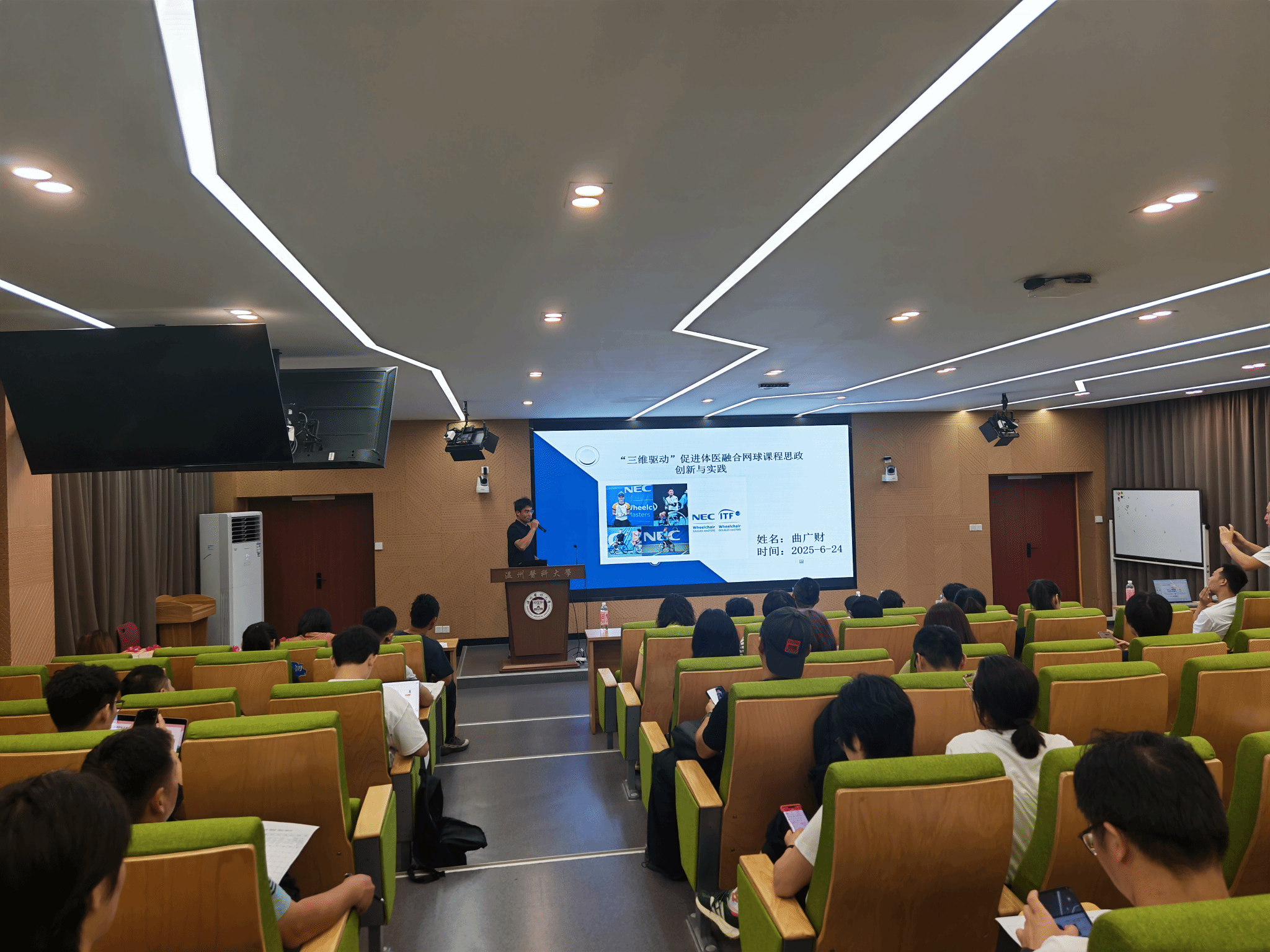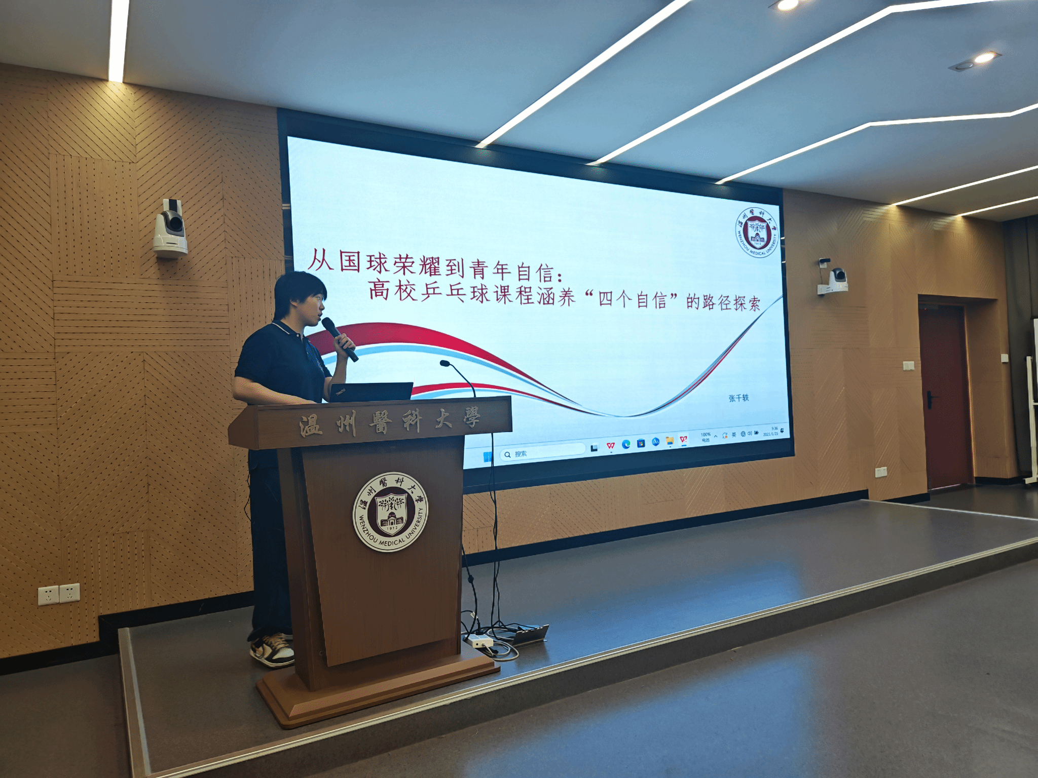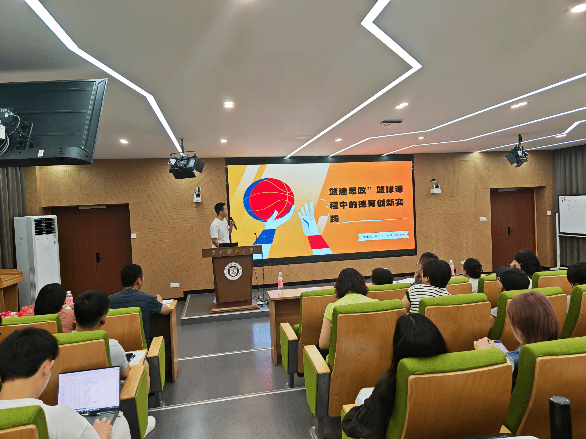 张千轶老师以《从国球荣耀到青年自信:高校乒乓球课程涵养“四个自信”的路径探索》为题,深入分析乒乓球课程在培育大学生文化自信方面的独特优势;陈捷思老师的《“以武为基,德技并修”武术课程思政创新与实践》则体现了中华优秀传统文化的传承与思政教育的融合;曲广财老师的《“三维驱动”促进体医融合网球课程思政创新与实践》提出多维度教学策略,推动健康理念进课堂。胡忠忠老师以“体医融合”视角切入,展示《健身健美》课程的思政实践路径;李克强老师从定向运动课程出发,构建“身心锻炼与价值塑造双轮驱动”的思政元素;郑占飞老师则通过“篮途思政”方面,探索篮球教学中的德育创新路径;林汝涵老师聚焦健美操课程,设计贴合大学生成长需求的教学内容;王筱玮老师的“以舞载道,以仪立行”深刻阐述体育舞蹈在品德、文化和礼仪养成中的重要作用,获得了现场一致好评。