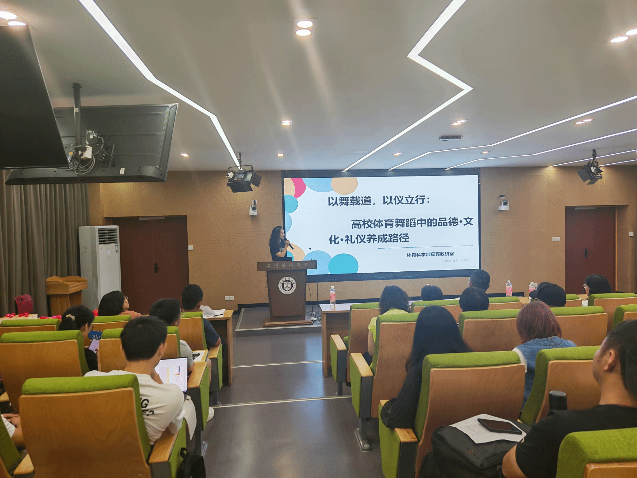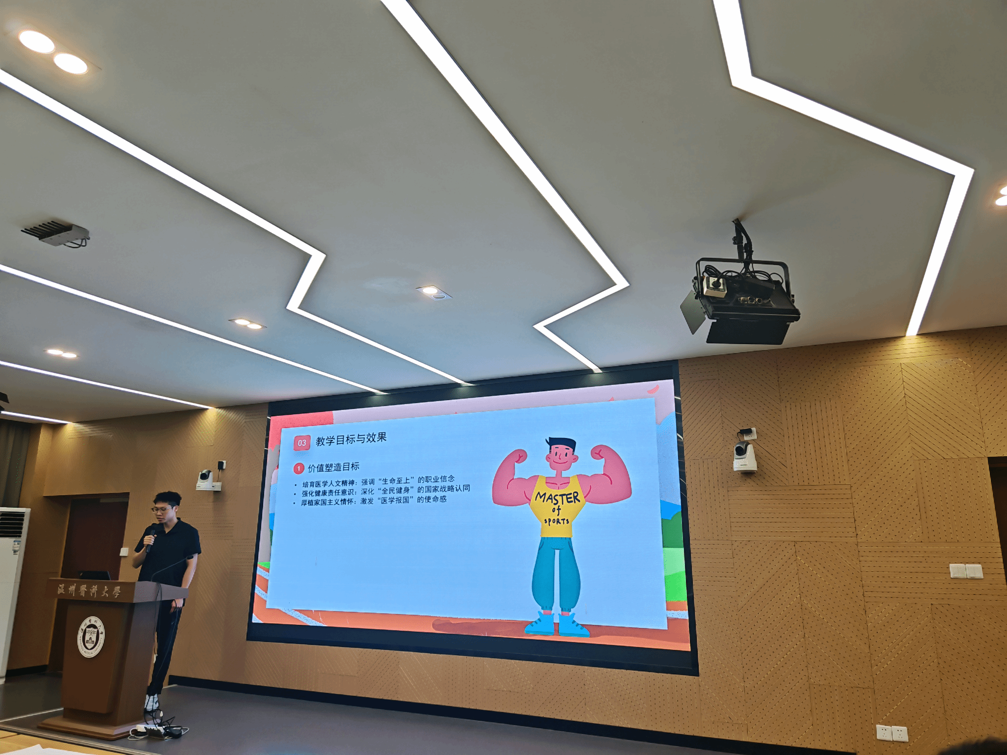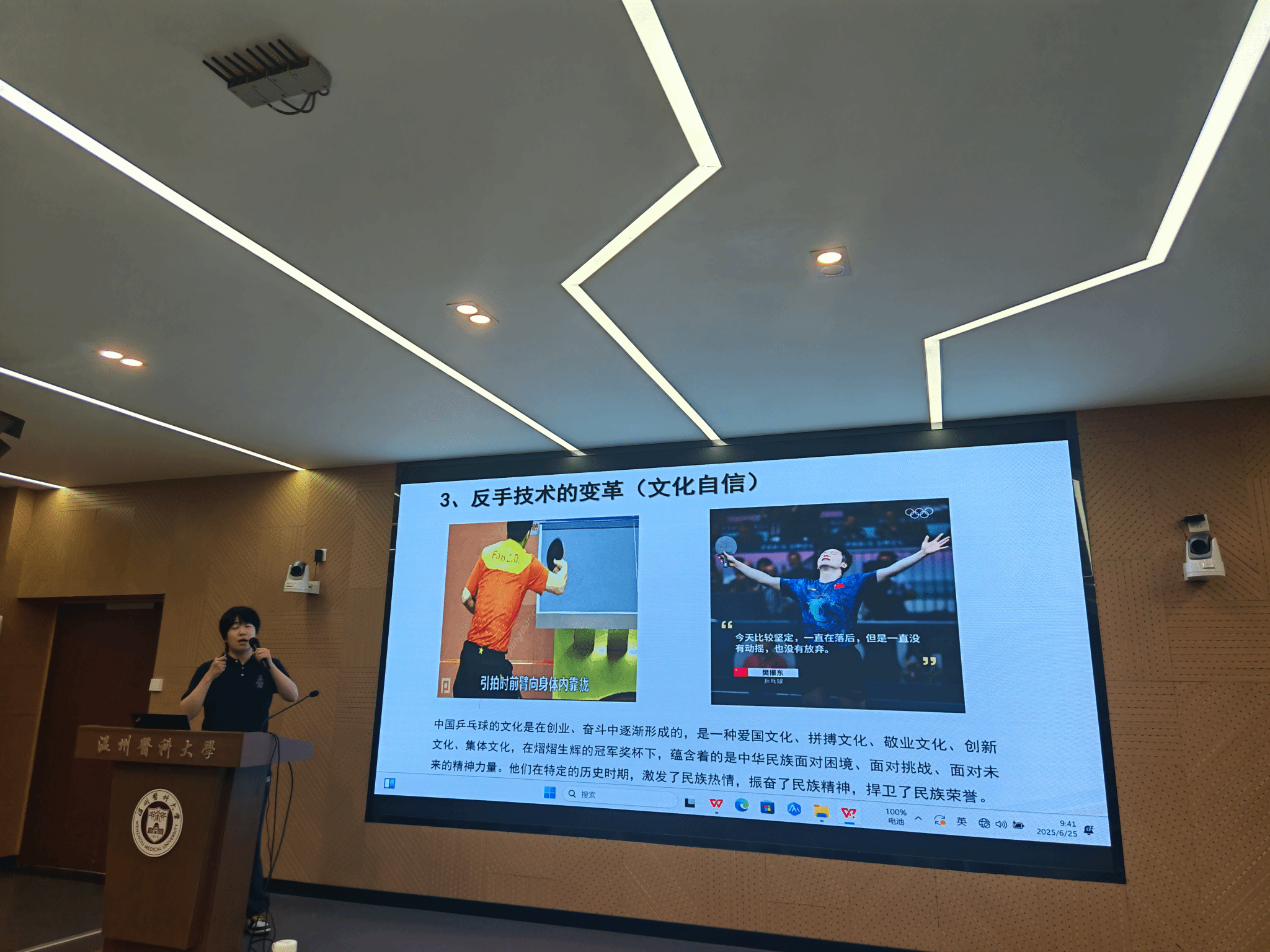 张千轶老师以《从国球荣耀到青年自信:高校乒乓球课程涵养“四个自信”的路径探索》为题,深入分析乒乓球课程在培育大学生文化自信方面的独特优势;陈捷思老师的《“以武为基,德技并修”武术课程思政创新与实践》则体现了中华优秀传统文化的传承与思政教育的融合;曲广财老师的《“三维驱动”促进体医融合网球课程思政创新与实践》提出多维度教学策略,推动健康理念进课堂。胡忠忠老师以“体医融合”视角切入,展示《健身健美》课程的思政实践路径;李克强老师从定向运动课程出发,构建“身心锻炼与价值塑造双轮驱动”的思政元素;郑占飞老师则通过“篮途思政”方面,探索篮球教学中的德育创新路径;林汝涵老师聚焦健美操课程,设计贴合大学生成长需求的教学内容;王筱玮老师的“以舞载道,以仪立行”深刻阐述体育舞蹈在品德、文化和礼仪养成中的重要作用,获得了现场一致好评。