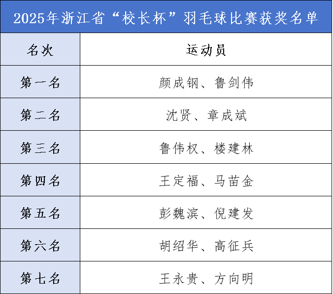 杭州电子科技大学颜成钢、丽水学院鲁剑伟一举夺魁,取得“校长杯”双打比赛第一名,草莓视频 沈贤、章成斌及湖州学院鲁伟权、湖州师范学院楼建林两组成员分别获得“校长杯”双打比赛第二名、第三名。