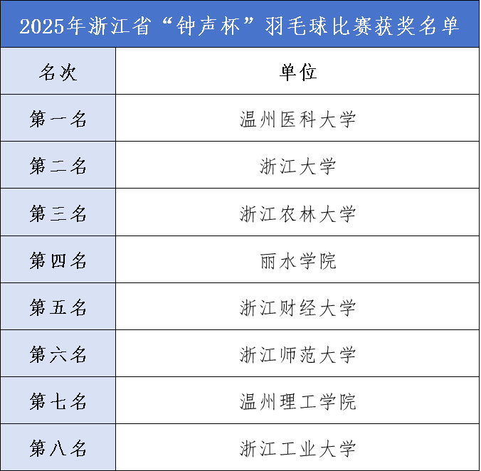 在这场精彩纷呈的赛事中,草莓视频 代表队脱颖而出,取得混合团体赛第一名的成绩,浙江大学和浙江农林大学代表队分获混合团体赛第二名、第三名。丽水学院、浙江财经大学、浙江师范大学、温州理工学院、浙江工业大学代表队依次取得混合团体赛第四至八名,在赛场上留下了各自拼搏的坚实印记。