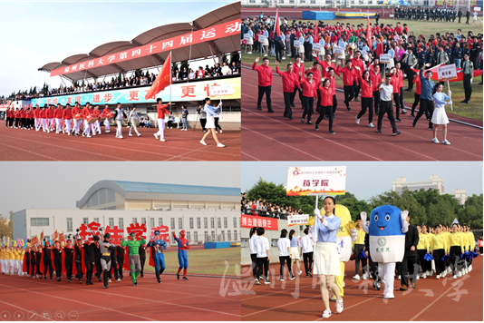 11月8日,校第44届运动会在茶山校区田径场开幕。校领导,体委成员,各参赛单位,学校有关部门,各组织相关负责人在主席台就坐。校党委副书记吕一军致开幕词,副校长曹建明主持开幕式。
