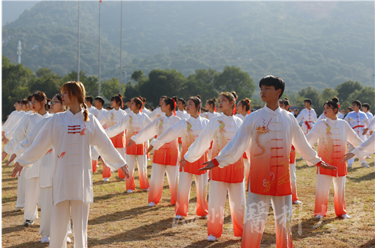 在运动员代表和裁判员代表宣誓后,由各学院学生组成的表演队为在场的各位带来了精彩武术表演八段锦,各表演队动作整齐划一、一气呵成,代表新时代青年向中国传统文化致敬,同时也为各项运动比赛拉开了序幕。